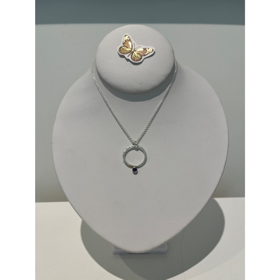 Sterling silver, amethyst, CZ on 19 in. chain, with sterling silver lobster clasp.