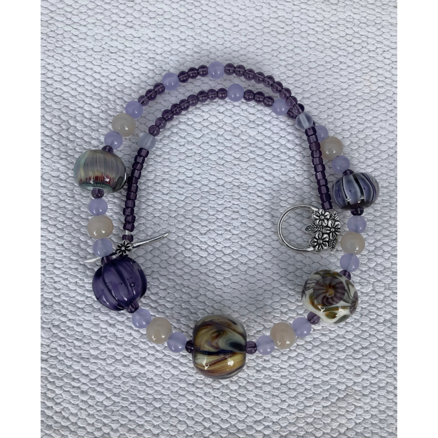 Glass Lampwork beads with glass beads with Sterling silver toggle clasp. 18 in. stainless steel cable.