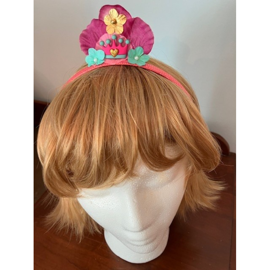 Headband made with satin, and crown and flowers ephemra.