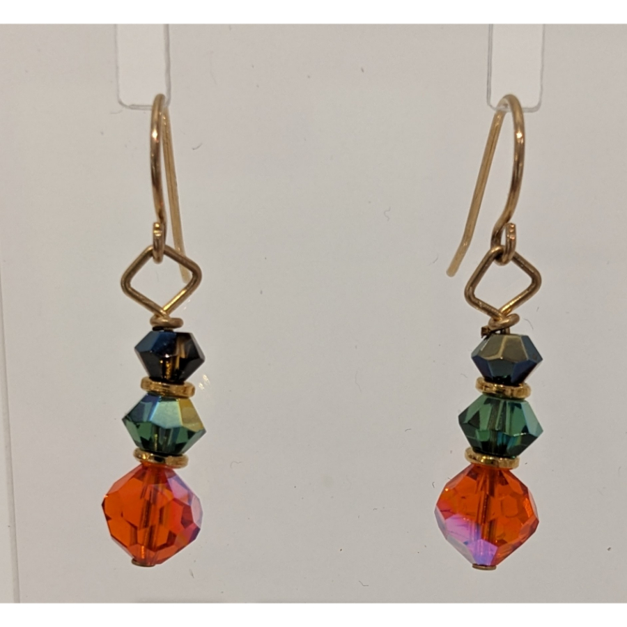 Swarovski crystals with gold filled findings and earwires. Drop: 7/8 in.
