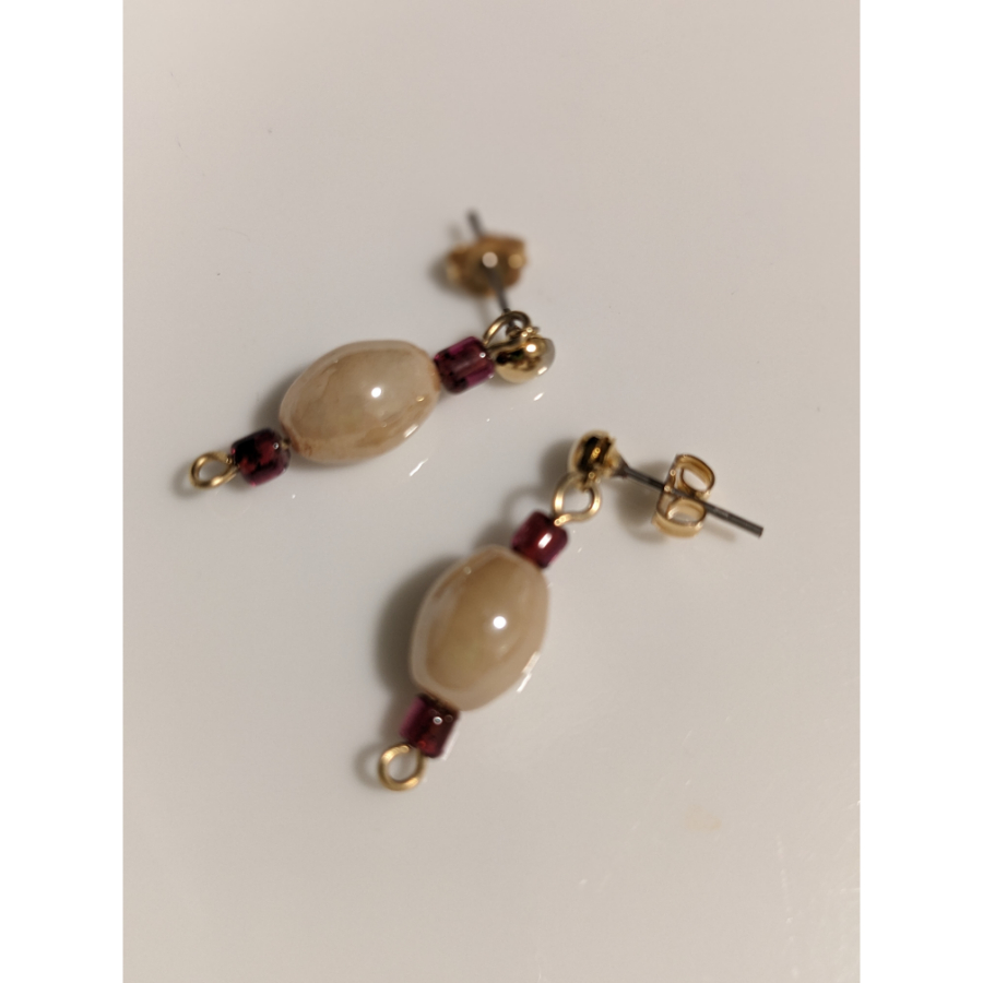 Glass and Garnet beads. Gold-filled findings and bead, stainless steel posts. Drop: 7/8 in.