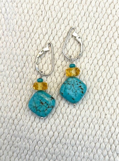 Magnasite, Citrine, Sterling silver lever back. Earring drop: 1 1/2 in.
