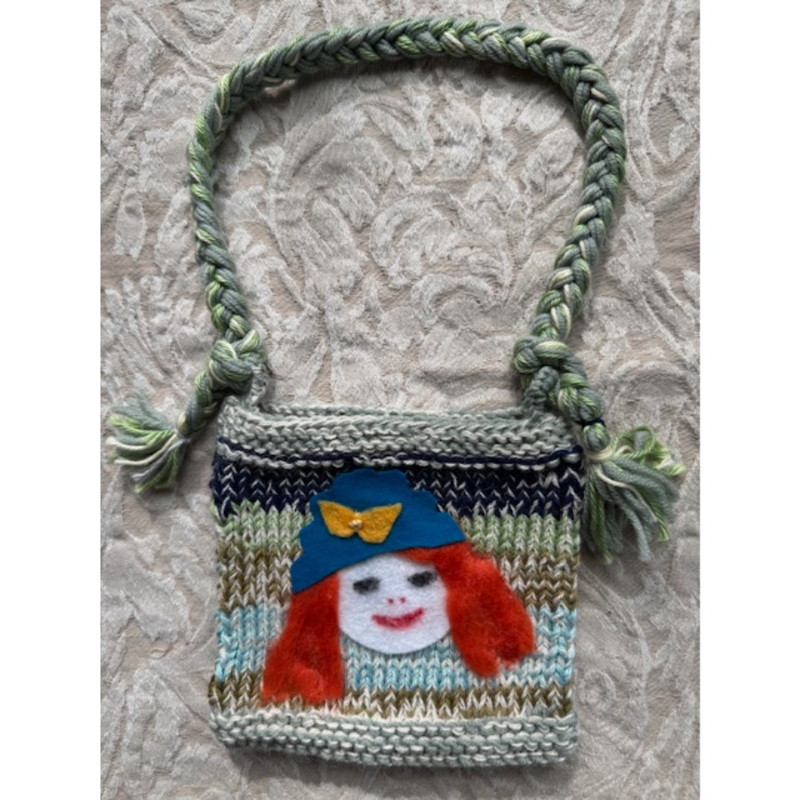 Purse made of acrylic and felt. 5 1/4 x 4 3/4 in. Dry clean.