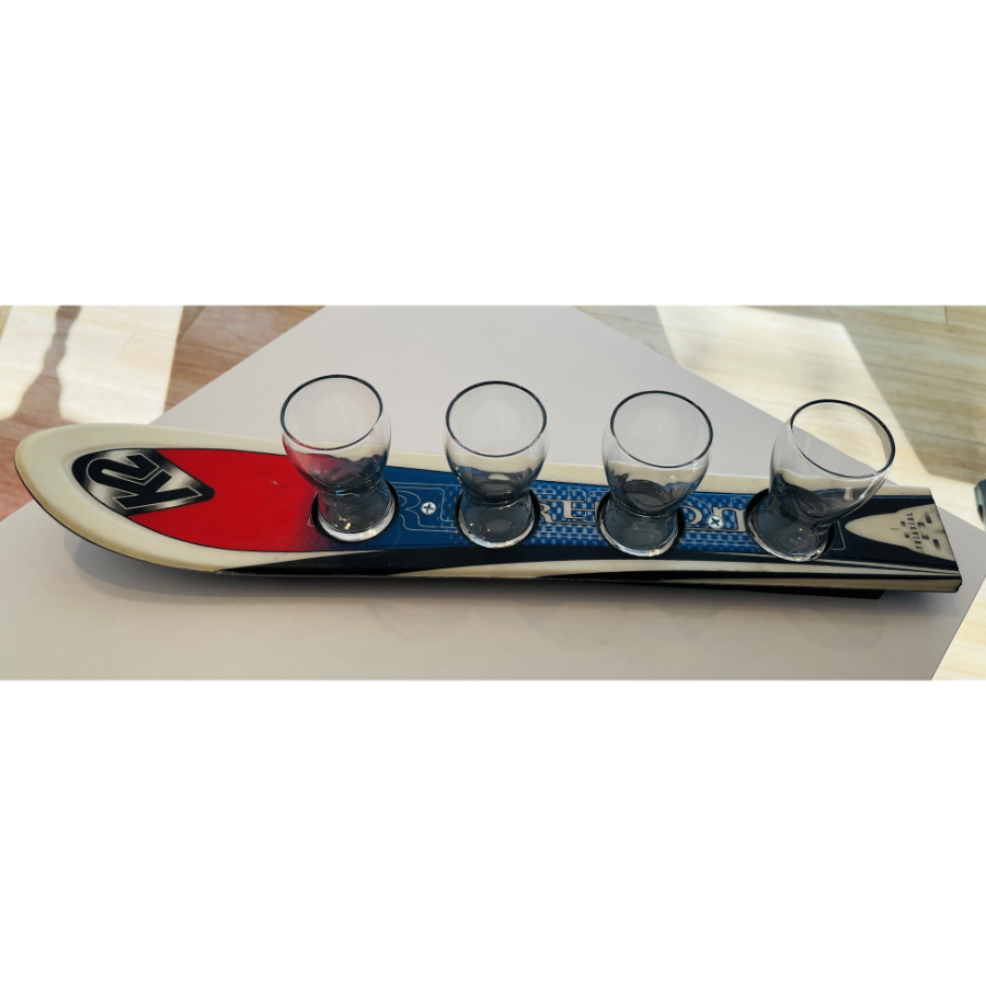 Recycled skis with four 5 oz. mini pub glasses. In Gallery pick up only.