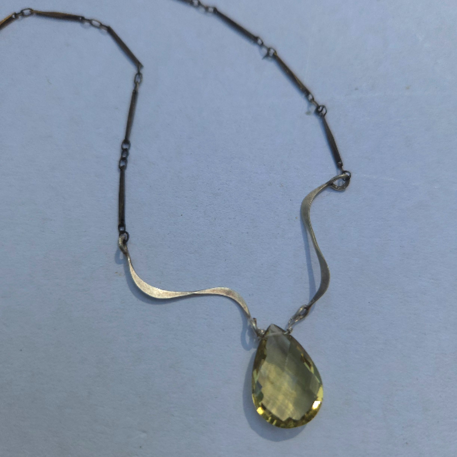 Lemon Quartz, Sterling silver Vintage steel 16 in. chain. Spring clasp.
