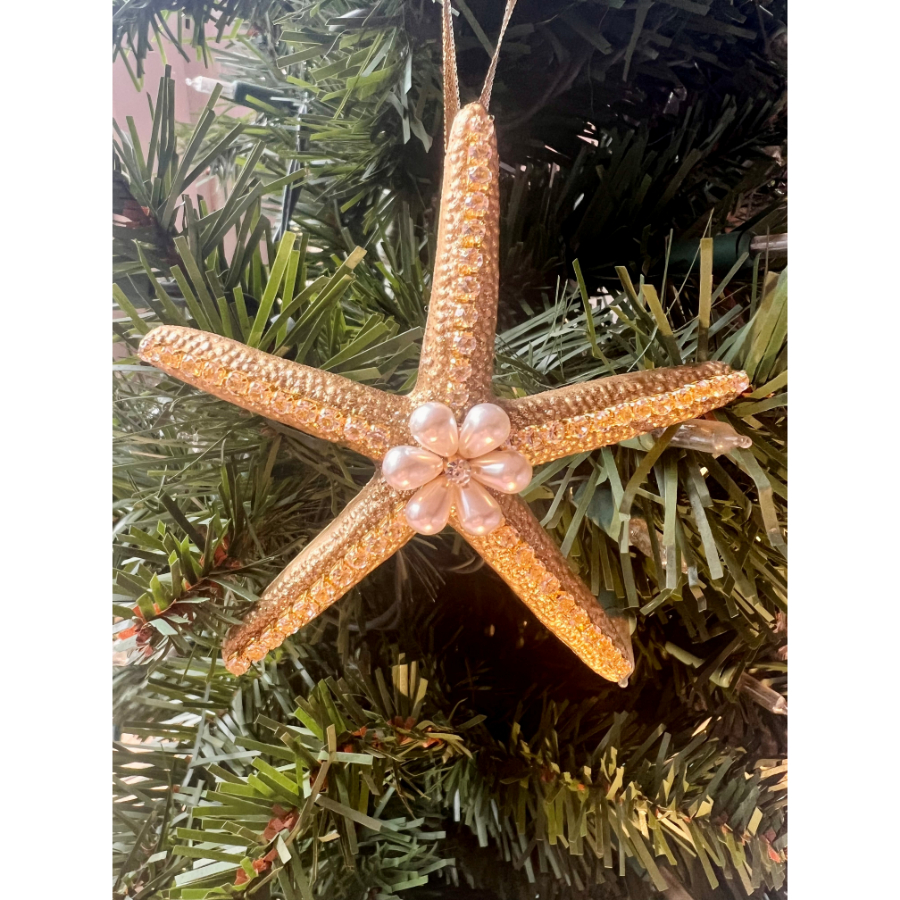 Gold painted starfish with rhinestones.