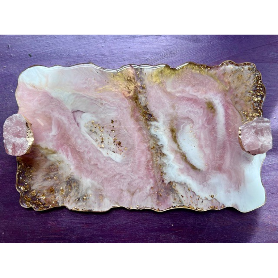 Resin, mica pigments, with gold leaf and crystal handles. 8 x 13 x 1/4 in.