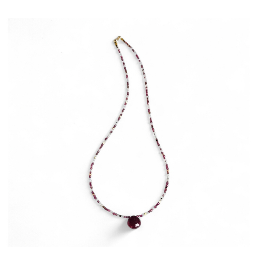 Ruby, Spinel, Zircon, Vermeil and gold-filled lobster clasp. Chain length is 17 1/2 in.