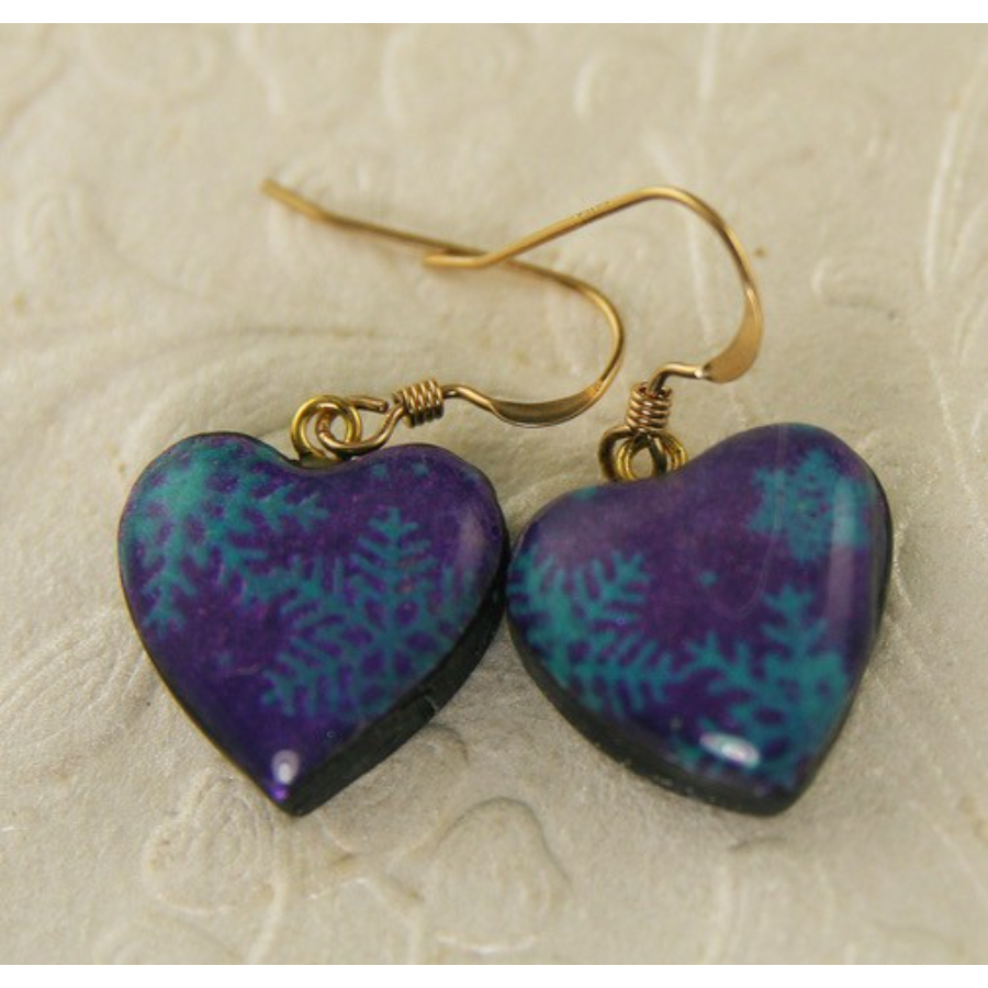 Polymer clay, resin, gold-filled earwires. Earring drop is 3/4 in.