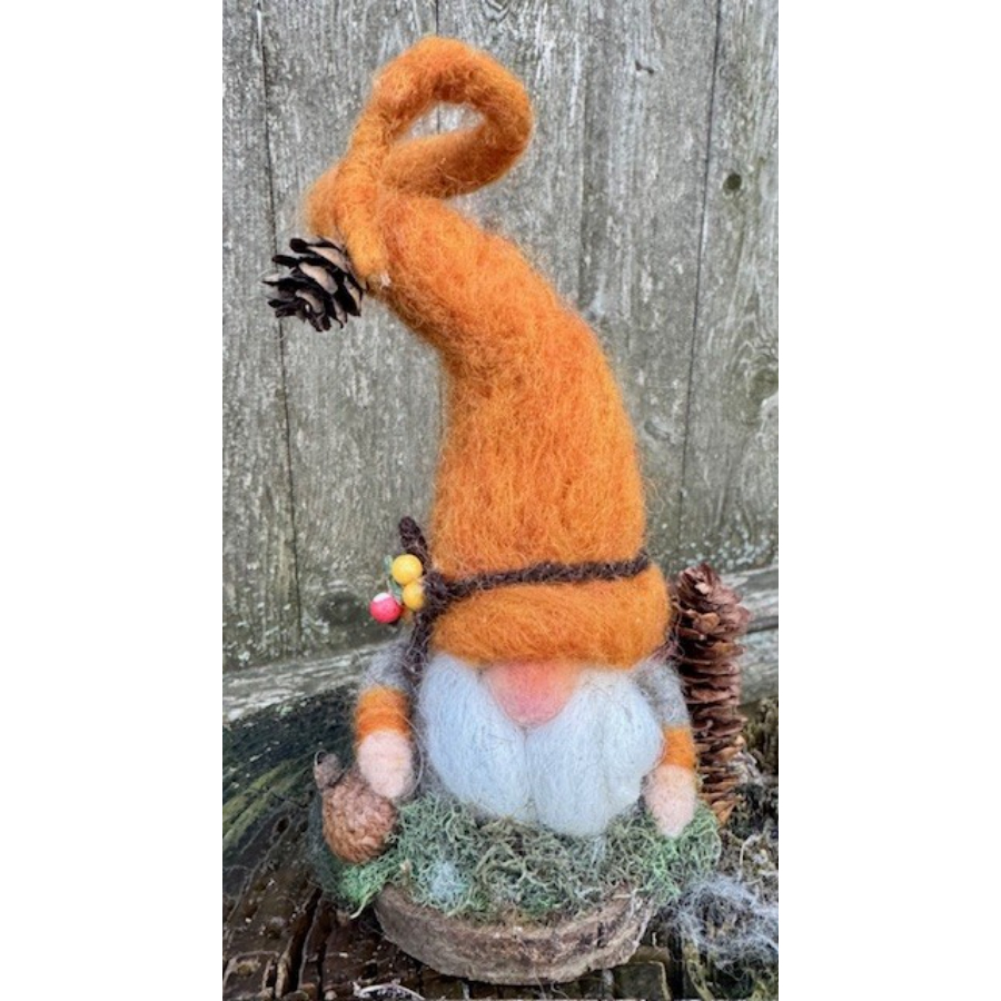 Needle felted Gnome with wool, wood, and natiral pinecones.