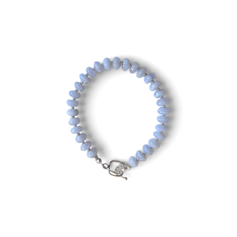 Blue Lace Agate and Sterling Beads. Sterling Silver toggle clasp. Bracelet size is 7 1/4 in.